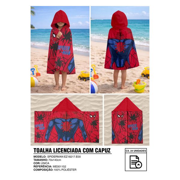 TOALHA PONCHO SPIDERMAN 70X140